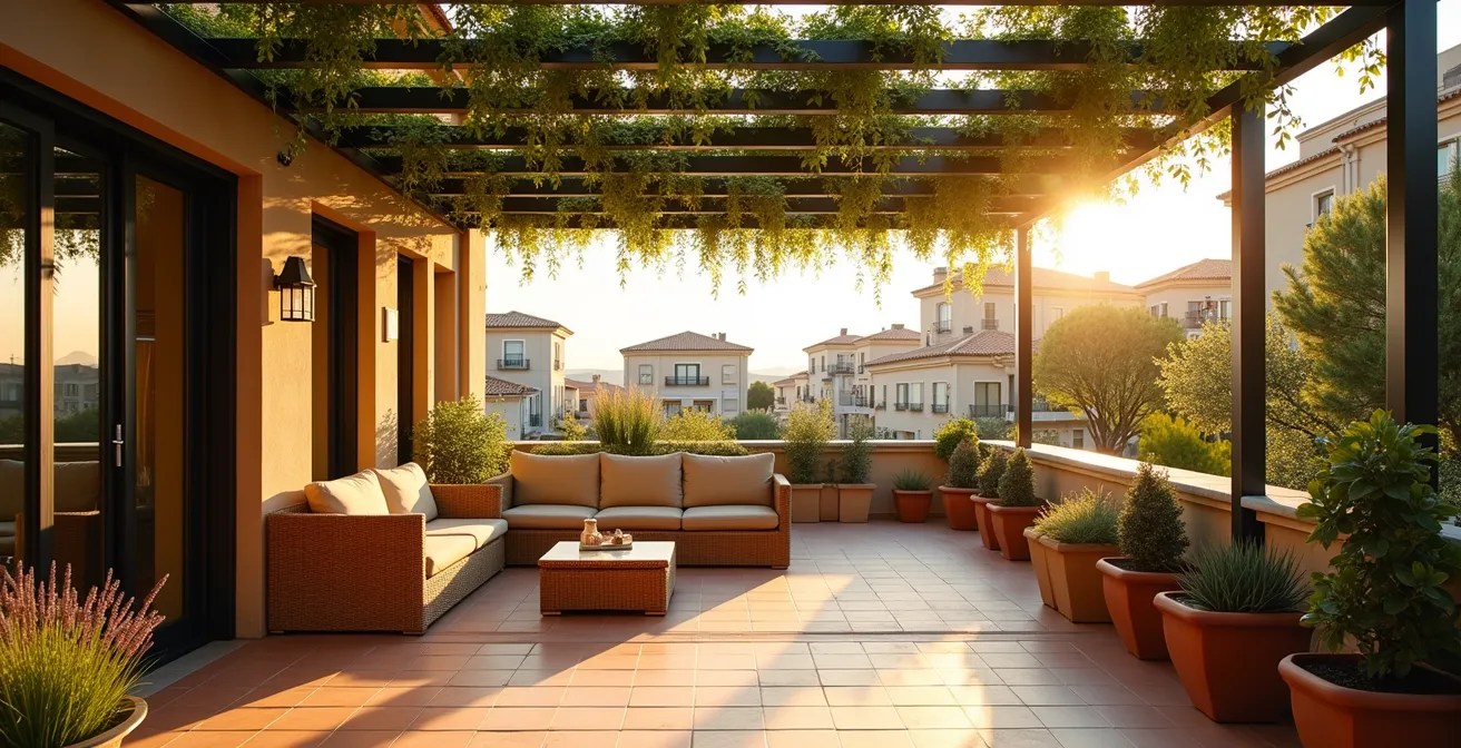 Este artículo te guiará a través de esa estrategia. Exploraremos desde la elección de las plantas más eficientes hasta las precauciones estructurales indispensables, pasando por la planificación milimétrica de la sombra para que puedas, por fin, recuperar tu terraza y convertirla en el oasis que siempre has deseado.