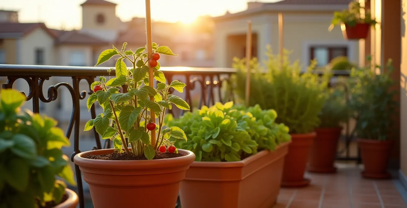 La idea de cosechar sus propios tomates jugosos y lechugas crujientes en un pequeño balcón de ciudad seduce a muchos urbanitas. Sin embargo, la realidad a menudo se traduce en plantas raquíticas y una cosecha decepcionante. El error más común que observo como ingeniero agrónomo no es la falta de dedicación, sino la aplicación de consejos de jardinería genéricos a un entorno que exige precisión técnica. Se suele hablar de «macetas grandes» y «riego abundante», pero rara vez se cuantifica qué significa «grande» para una tomatera o cómo ese «riego abundante» impacta el peso total que soporta la estructura de su edificio.