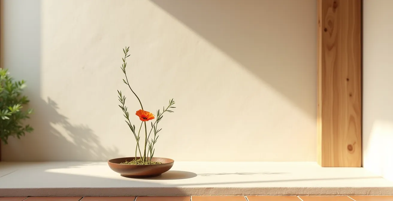 En el torbellino de la vida moderna, la mente busca sin cesar un ancla, un remanso de paz donde el ruido exterior se disipe. Muchos creen encontrarlo en pasatiempos que exigen orden y perfección, como los arreglos florales occidentales donde cada flor se alinea en una masa compacta y simétrica. La idea de crear algo visualmente «perfecto» parece un antídoto contra el caos. Pero, como maestro en este arte ancestral, le aseguro que ese camino a menudo genera más frustración que calma. Se convierte en una lucha por dominar la naturaleza, en lugar de colaborar con ella.