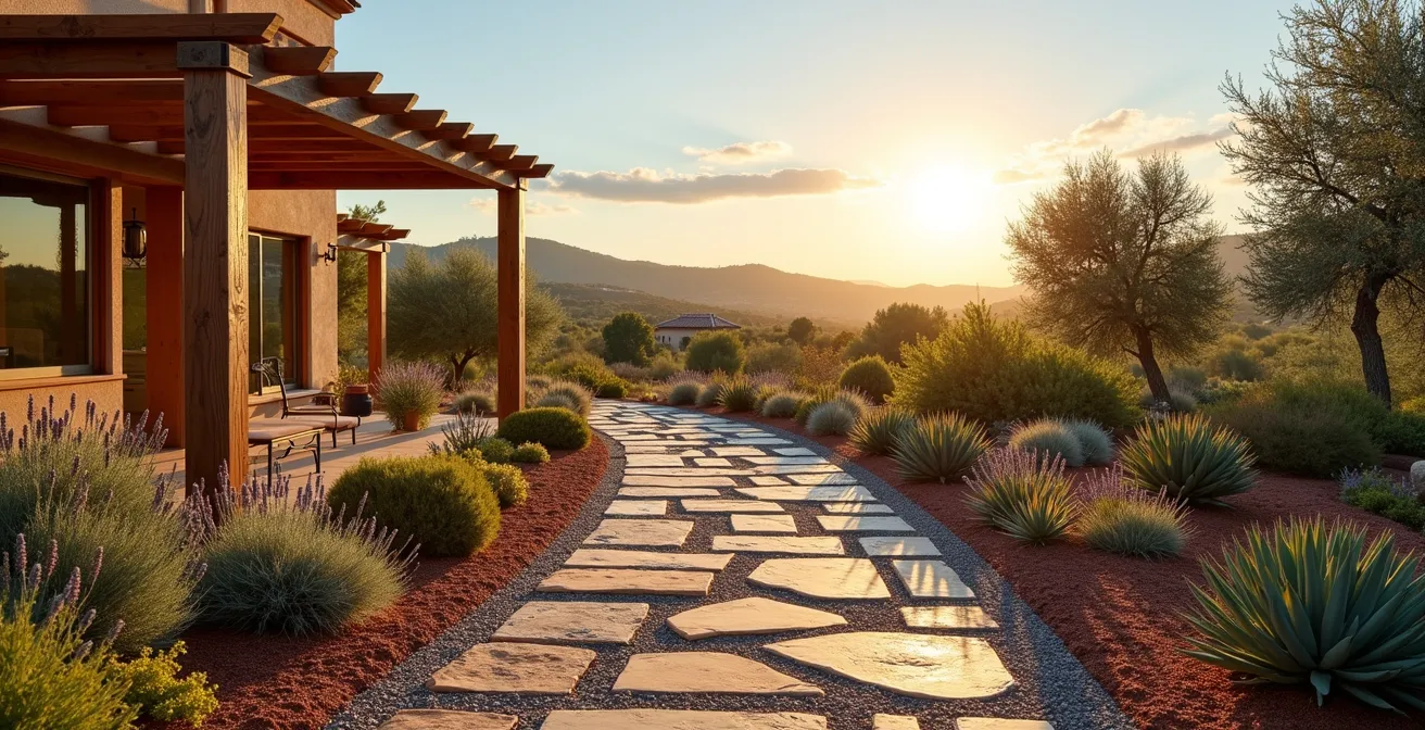 Diseñar un jardín exuberante que consuma un 60% menos de agua no es una utopía, es la promesa cumplida del xéropaysagismo. Este concepto, introducido en España en los años 90 por expertas como la Dra. Silvia Burés, integra todos los principios que hemos visto en una única filosofía de diseño. No se trata de crear un jardín desértico lleno de cactus, sino de utilizar la inteligencia de la naturaleza para tener un espacio verde y frondoso con recursos mínimos. Un jardín xerófito bien planificado, siguiendo los siete principios del National Xeriscape Council adaptados al clima mediterráneo, puede consumir tan solo un 30% del agua que necesita un jardín tradicional.
