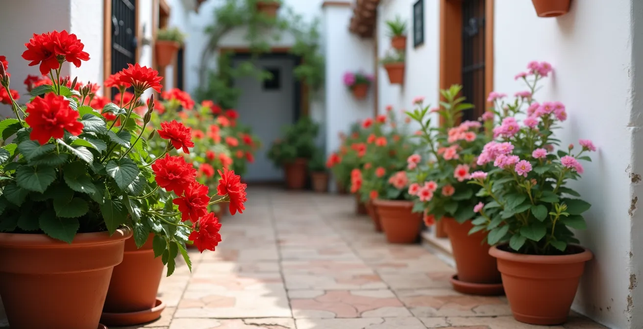 La sabiduría popular se centra en consejos genéricos como «regar a menudo» o «usar abono para flores». Si bien son importantes, ignoran el verdadero corazón de la tradición cordobesa: una planificación casi ritual que comienza en otoño, una selección meticulosa de especies y un entendimiento profundo de cómo el color y la luz interactúan para crear una atmósfera. La verdadera magia no está en la cantidad de flores, sino en la orquestación de su ciclo vital.