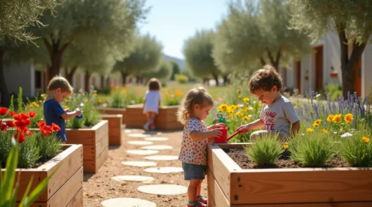 Diseñar espacios exteriores pensando en los niños implica integrar oportunidades de aprendizaje natural. Plantar especies de semillas de germinación rápida (girasoles, habas, capuchinas) permite que los niños observen el ciclo de causa-efecto en apenas una semana. Los colores primarios intensos de flores y frutos estimulan el desarrollo visual. Estudios en neurología pediátrica sugieren que el contacto regular con espacios verdes naturales contribuye a la reducción de síntomas de hiperactividad en niños con TDAH, proporcionando entornos de calma y concentración que contrarrestan la sobreestimulación digital.