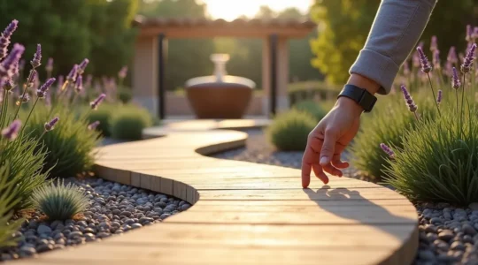 El concepto de «scentcaping» consiste en diseñar capas de fragancia que se despliegan según la hora del día y la temperatura: jazmines y damas de noche para las noches de verano, romero y tomillo que liberan sus aceites esenciales al roce durante el día, naranjos que perfuman el jardín en primavera. Combinado con elementos auditivos (bambúes que susurran con la brisa, campanas de viento), texturas para caminar descalzo (césped, gravilla redondeada, madera) y estaciones de degustación con hierbas aromáticas y frutos comestibles, el jardín se transforma en una experiencia multisensorial de lujo.